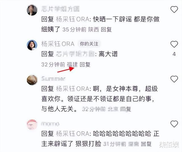而就在粉丝这条动态下,有网友就反驳称杨采钰肯定没领证,不然杨采钰应该会晒,没想到杨采钰本人竟然回应了,她写道:“哦?”文字虽短,但这个回应算是默认了粉丝上面说的她与男友正常领证一事。